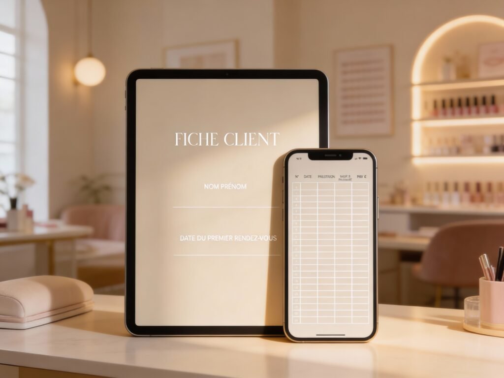 Pensée pour les professionnelles de la beauté, cette fiche client téléchargeable vous permet de centraliser toutes les informations essentielles de vos clientes : coordonnées, antécédents, examens, prestations réalisées et suivi des transactions.